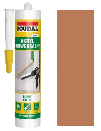- Akryl uniwersalny SOUDAL TEAK brązowy, charakteryzuje się trwałymi kolorami, po utwardzeniu daje się malować, doskonale przylega do podłoży porowatych, nie zawiera rozpuszczalników.