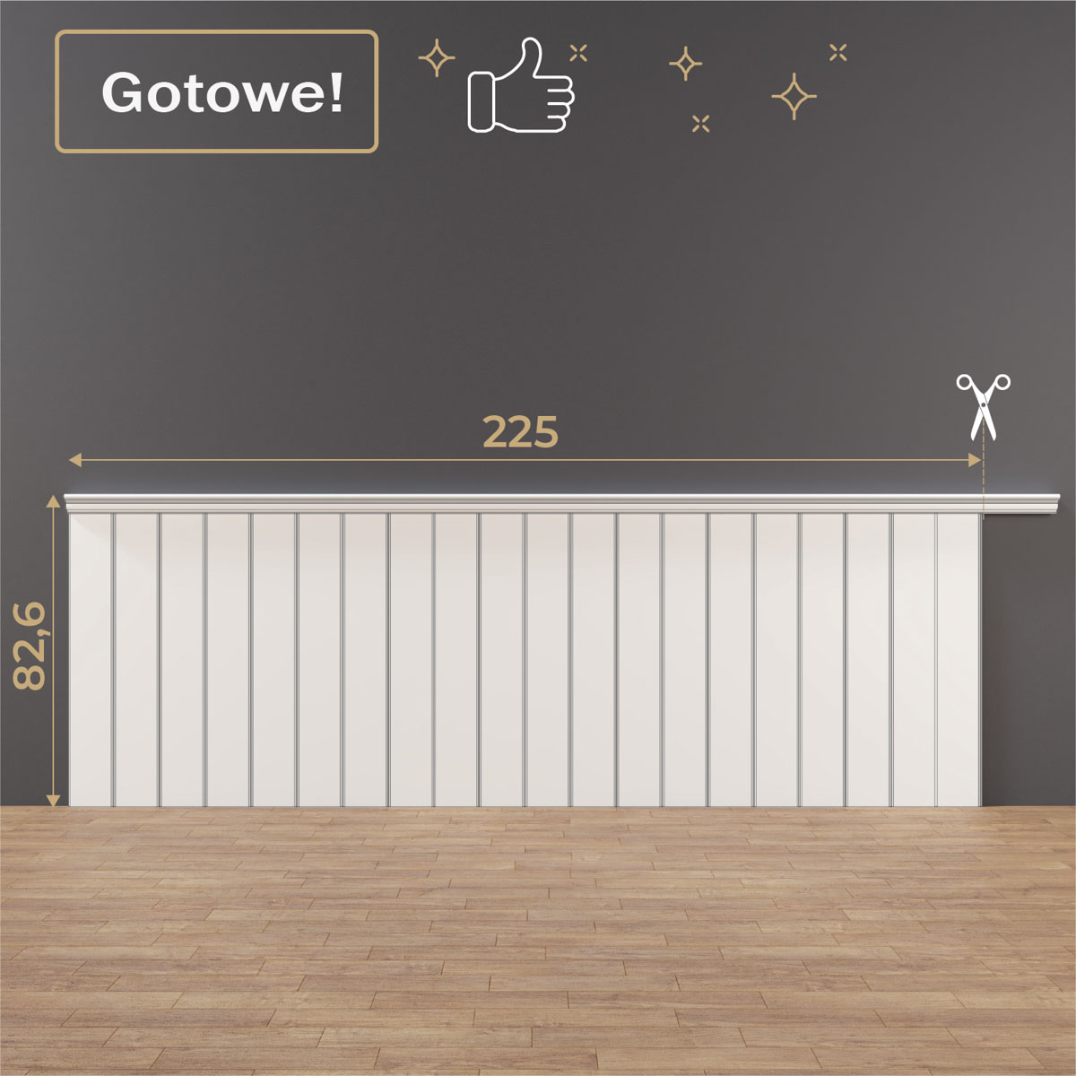 Boazeria angielska MDF lakierowana - zestaw listew na ścianę - długość 225 cm / wysokość 82,6 cm (model Nova)