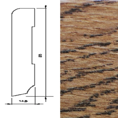 Wierzchnia warstwa z naturalnego forniru dębowego nadaje listwie wyjątkowy wygląd – klasyczny, elegancki i ponadczasowy. Dąb słynie z pięknego usłojenia oraz wysokiej odporności na ścieranie i uszkodzenia mechaniczne.