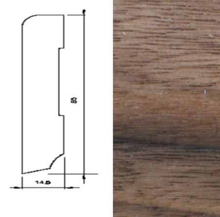 Wierzchnia warstwa z naturalnego forniru nadaje listwie wyjątkowy wygląd – klasyczny, elegancki i ponadczasowy. Orzech słynie z pięknego usłojenia oraz wysokiej odporności na ścieranie i uszkodzenia mechaniczne.