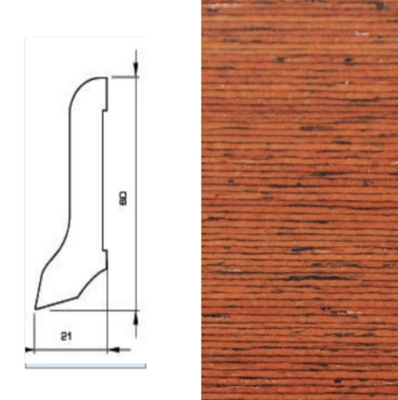 - Listwa przypodłogowa merbau to stylowe wykończenie wnętrza z naturalnym fornirem na rdzeniu z drewna iglastego. Lakierowana powłoka zapewnia odporność na zabrudzenia i długotrwały, estetyczny wygląd.