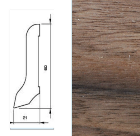 Drewniana listwa przypodłogowa lakierowana 60/22 (240 cm x 6 cm x 2,1 cm) Orzech Amerykański