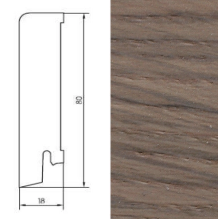 Drewniana listwa przypodłogowa lakierowana 80/18 (240 cm x 8 cm x 1,8 cm) Dąb Latte Macchiato