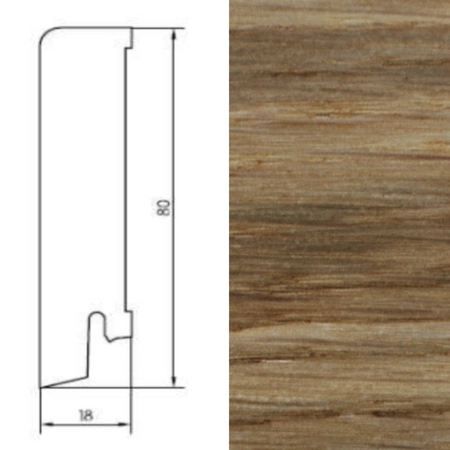 - Listwa przypodłogowa dąb szczotka to stylowe wykończenie wnętrza z naturalnym fornirem na rdzeniu z drewna iglastego. Lakierowana powłoka zapewnia odporność na zabrudzenia i długotrwały, estetyczny wygląd.