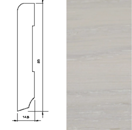- Listwa przypodłogowa jesion to stylowe wykończenie wnętrza z naturalnym fornirem na rdzeniu z drewna iglastego. Lakierowana powłoka zapewnia odporność na zabrudzenia i długotrwały, estetyczny wygląd.