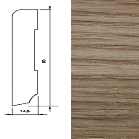 - Listwa przypodłogowa dąb szczotka to stylowe wykończenie wnętrza z naturalnym fornirem na rdzeniu z drewna iglastego. Olejowana powłoka zapewnia odporność na zabrudzenia i długotrwały, estetyczny wygląd.