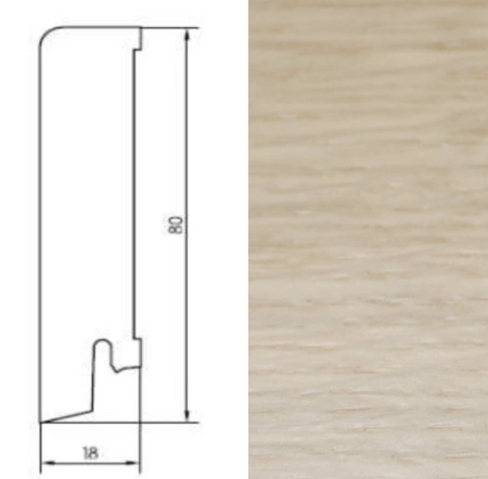 Drewniana listwa przypodłogowa olejowana 80/18 (240 cm x 8 cm x 1,8 cm) Dąb Biały olej