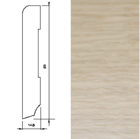 - Listwa przypodłogowa dąb bialy to stylowe wykończenie wnętrza z naturalnym fornirem na rdzeniu z drewna iglastego. Olejowana powłoka zapewnia odporność na zabrudzenia i długotrwały, estetyczny wygląd.