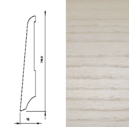 Drewniana listwa przypodłogowa olejowana KS80 (240 cm x 7,9 cm x 1,6 cm) Jesion Biały olej