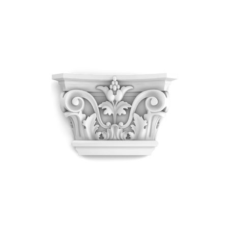 - Mała głowica K201 w stylu korynckim to dekoracyjny element sztukaterii ściennych, zdobiony liśćmi akantu i wolutą, idealny do pilastrów czy luków bibliotecznych.