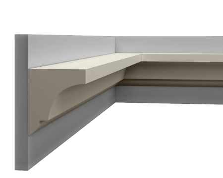 Produkt wykonany został z wysokiej jakości rdzenia EPS 200 (polistyren ekspandowany o wysokiej gęstości), co zapewnia mu lekkość i bardzo dobrą odporność mechaniczną. Całość pokryta jest nowoczesną warstwą ochronną Rhinst Exterior Covering Mass – to właśnie ona nadaje gzymsowi wyjątkową trwałość, odporność na warunki atmosferyczne oraz możliwość malowania farbami elewacyjnymi.