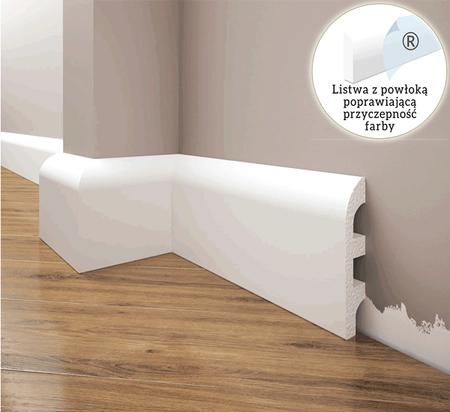 - Listwa przypodłogowa Creativa LPC-19F, wykonana z utwardzonego polistyrenu, o wymiarach 19x100mm i długości 200cm, jest lekka, twarda, odporna na wilgoć i zmywanie, gotowa do malowania dowolną farbą wodną.