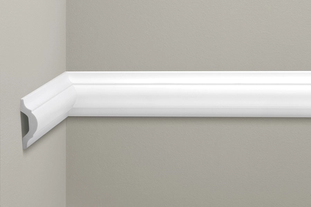 - Listwa ścienna Creativa LNG 16, wykonana z twardego, lekkiego i odpornego na wilgoć poliuretanu spienionego, z gładką, satynową fakturą, gotowa do malowania dowolnymi farbami wodnymi.