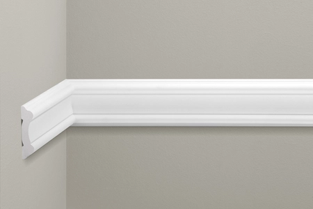 - Listwa ścienna Creativa LNG 13F, wykonana z lekkiego i twardego poliuretanu elastycznego, odporna na wilgoć i zmywanie, gładka, satynowa, gotowa do malowania, wymiary 19x80mm, długość 235cm.