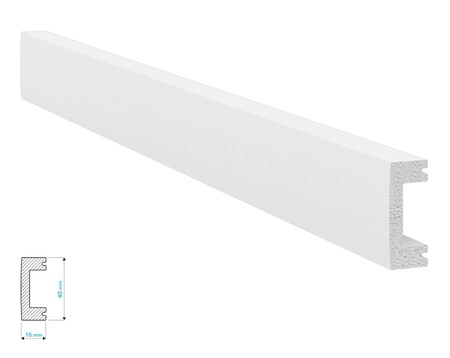 - Listwa Krome PN4016, o wymiarach 40x16x2400, jest biała, odporna na wilgoć, grzyby i pleśń, wykonana z polistyrenu o wysokiej gęstości i pokryta polimerem, idealna do maskowania niedoskonałości ścian.