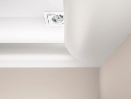 - Listwa oświetleniowa przysufitowa Creativa LOC-01, wykonana z utwardzonego polistyrenu, gładka, satynowa, odporna na wilgoć i zmywanie, nietoksyczna, o wymiarach 42x180mm i długości 244cm.