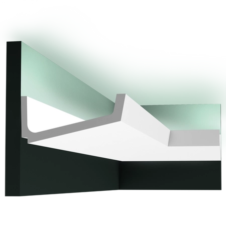 - Gzyms do oświetlenia pośredniego C352 - Flat to sztukateria sufitowa z ostrymi krawędziami, o szerokim i płaskim profilu, idealna do listew oświetleniowych sufitowych.