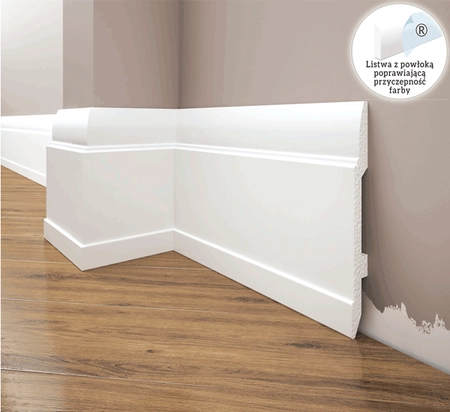 - Listwa przyłogowa Creativa LPC-25, wykonana z utwardzonego polistyrenu, jest lekka, twarda, odporna na wilgoć i zmywanie. Można ją malować dowolnymi farbami wodnymi.