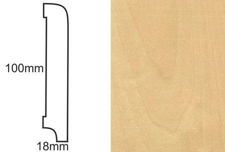 - Listwa przypodłogowa fornirowana, brzoza, nielakierowana o profilu CP100 R10 i wymiarach 100mm x 18mm x 2400mm, idealna do bejcowania, olejowania czy lakierowania.