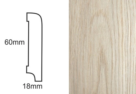 - Listwa przypodłogowa fornirowana, dąb, nielakierowana, o wymiarach 60mm x 18mm x 2400mm, idealna do bejcowania, olejowania czy lakierowania.