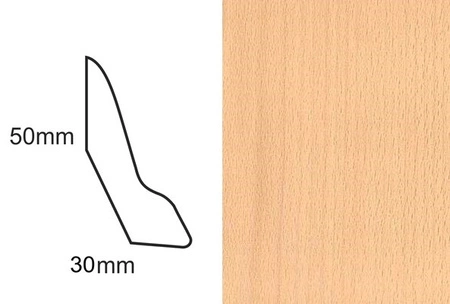 - Listwa przypodłogowa fornirowana, buk, nielakierowana o profilu LP60 i wymiarach 50mm x 30mm x 2000mm, idealna do bejcowania, olejowania czy lakierowania.