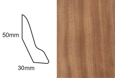 - Listwa przypodłogowa fornirowana, sapella, nielakierowana, o wymiarach 50mm x 30mm x 2400mm, gotowa do montażu.