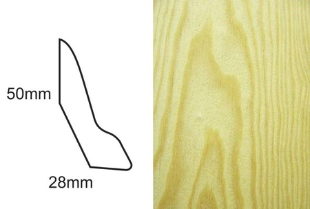 - Listwa przypodłogowa fornirowana, sosna, nielakierowana, o wymiarach 50mm x 30mm x 2400mm, idealna do bejcowania, olejowania czy lakierowania.