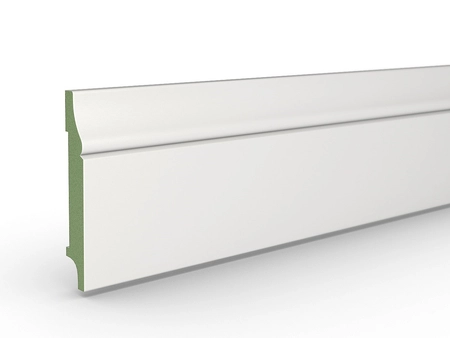 MDF (Medium Density Fiberboard) to płyta drewnopochodna o średniej gęstości, szeroko stosowana w produkcji listew przypodłogowych i dekoracyjnych. Łączy stabilność wymiarową z gładką powierzchnią, która ułatwia malowanie i wykończenie według indywidualnych potrzeb.