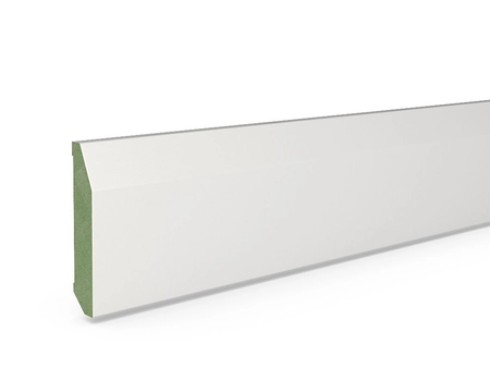 MDF (Medium Density Fiberboard) to płyta drewnopochodna o średniej gęstości, szeroko stosowana w produkcji listew przypodłogowych i dekoracyjnych. Łączy stabilność wymiarową z gładką powierzchnią, która ułatwia malowanie i wykończenie według indywidualnych potrzeb.