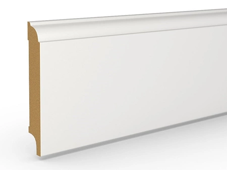 - Listwa przypodłogowa biała MDF STD, wzór F5, o wymiarach 80mm x 16mm x 2440mm, lakierowana półmatowym lakierem RAL 9003, z zabezpieczeniem przeciwwilgociowym.