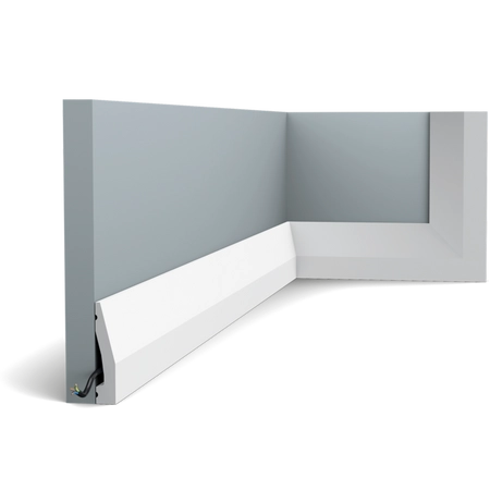 - Listwa przypodłogowa SX159 z poliuretanu, prosta, z górnym zwężeniem, oferuje praktyczną wnękę do ukrycia kabli.