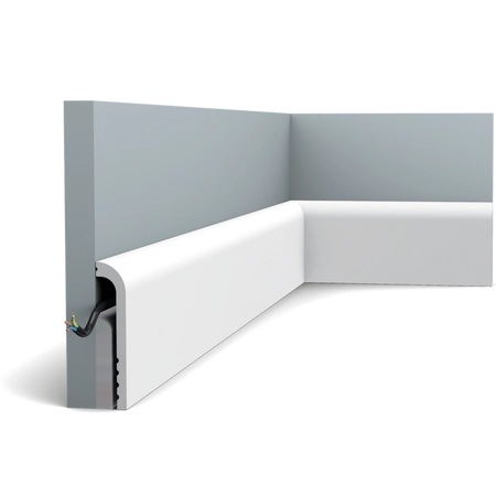 - Listwa przypodłogowa poliuretanowa SX185 z zaokrągloną górną krawędzią, idealna do renowacji, maskuje starą listwę lub kable, pasuje na listwę o wymiarach max. 1,7 x 9,5 cm.