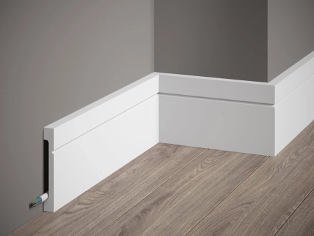 - Listwa przypodłogowa poliuretanowa MD356P z tworzywa PolyForce, odpornej na wilgoć, promieniowanie UV i uszkodzenia, nie wymaga malowania, nie odkształca się ani nie żółknie.
