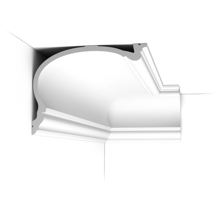Listwa przysufitowa Orac Decor C343 ma długość 200 cm, szerokość 25 cm i wysokość 19 cm. Wykonana jest z Purotouch®, wysokiej jakości tworzywa sztucznego, które jest lekkie, trwałe i łatwe w montażu. Listwa jest dostępna w czterech rozmiarach: M (C341), L (C342), XL (343), XXL (C344), dzięki czemu z łatwością dopasujesz ją do swojego wnętrza.O producencie - Orac Decor
