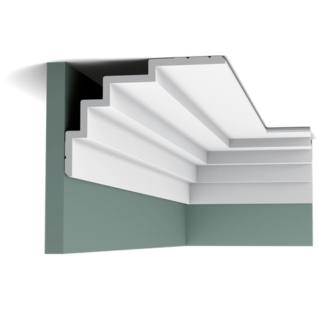Listwa przysufitowa Orac Decor C393 jest wykonana z Purotouch®, co gwarantuje jej wytrzymałość i długą żywotność. Dzięki swojemu eleganckiemu designowi, ten profil schodkowy jest nie tylko funkcjonalny, ale także stanowi stylowy element dekoracyjny. Listwa przysufitowa może dodać przestrzeni dodatkowej wysokości i wymiaru, co jest szczególnie korzystne w przypadku montażu w rogach.Szczegółowe zastosowania i przykłady użycia