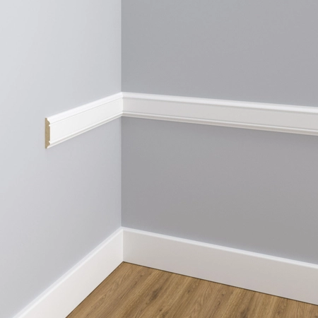 MDF (Medium Density Fiberboard) to płyta drewnopochodna o średniej gęstości, szeroko stosowana w produkcji listew przypodłogowych i dekoracyjnych. Łączy stabilność wymiarową z gładką powierzchnią, która ułatwia malowanie i wykończenie według indywidualnych potrzeb.