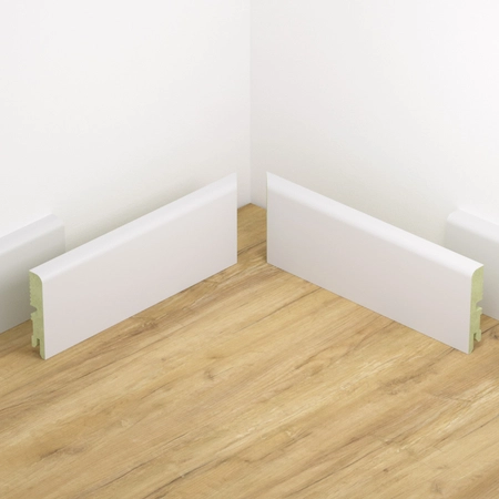 MDF (Medium Density Fiberboard) to płyta drewnopochodna o średniej gęstości, szeroko stosowana w produkcji listew przypodłogowych i dekoracyjnych. Łączy stabilność wymiarową z gładką powierzchnią, która ułatwia malowanie i wykończenie według indywidualnych potrzeb.