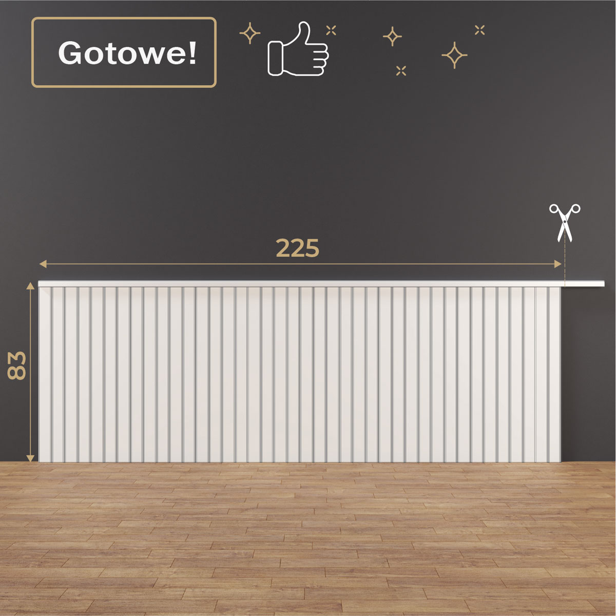 Nowoczesna boazeria ścienna MDF lakierowana – styl angielski - zestaw listew - długość 225 cm / wysokość 83 cm (model Nova-1 Slim)