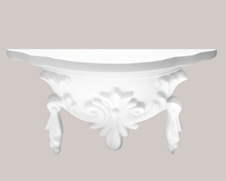- Ornament dekoracyjny Creativa D-05, wykonany z poliuretanu, gotowy do malowania, przedstawiający aniołka z misą, idealny jako element sztukaterii ściennych o wymiarach 450x15x235 mm.