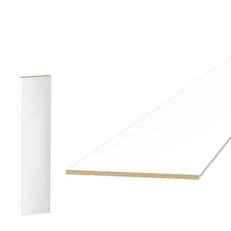 MDF (Medium Density Fiberboard) to płyta drewnopochodna o średniej gęstości, szeroko stosowana w produkcji listew przypodłogowych i dekoracyjnych. Łączy stabilność wymiarową z gładką powierzchnią, która ułatwia malowanie i wykończenie według indywidualnych potrzeb.