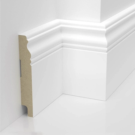 - Listwa przypodłogowa Alexa z płyty MDF, lakierowana 3 warstwami lakieru w kolorze białym RAL9003, oferuje niezrównaną ochronę dzięki wodoodpornej powłoce, a jej elegancki design dodaje przestrzeni królewskiego przepychu.