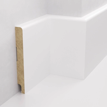 MDF (Medium Density Fiberboard) to płyta drewnopochodna o średniej gęstości, szeroko stosowana w produkcji listew przypodłogowych i dekoracyjnych. Łączy stabilność wymiarową z gładką powierzchnią, która ułatwia malowanie i wykończenie według indywidualnych potrzeb.