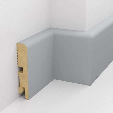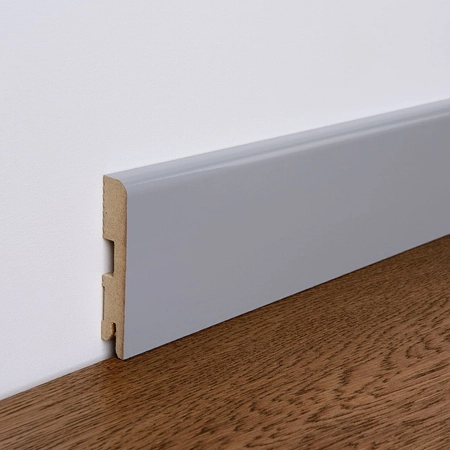 - Listwa przypodłogowa z MDF, trwała i estetyczna dzięki trzykrotnemu lakierowaniu UV w kolorze szarym RAL7042, wysoce odporna na uszkodzenia mechaniczne i zarysowania, łatwa w montażu, pasuje do wielu stylów wnętrz.