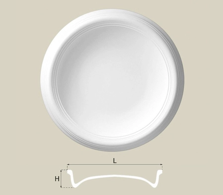 - Rozeta sufitowa Creativa R-22 o średnicy 950 mm, wykonana z lekkiego, twardego i wilgocioodpornego poliuretanu, gotowa do malowania dowolną farbą wodną.