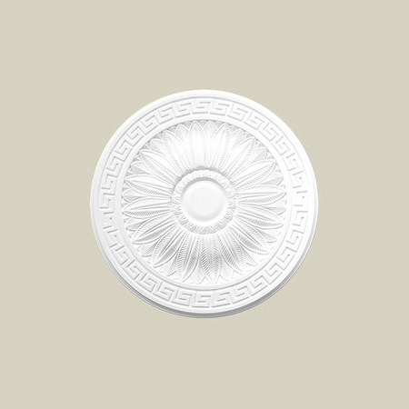- Rozeta sufitowa R-23 od Creativa, wykonana z lekkiego, twardego i odpornego na wilgoć poliuretanu, o gładkiej, satynowej fakturze, gotowa do malowania dowolnymi farbami wodnymi.