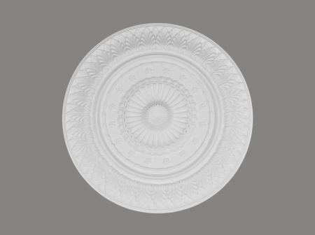 Rozeta sufitowa B3050 ma średnicę 67 cm i wysokość 5.3 cm. Wykonana jest z polimeru ProFoam, który cechuje się wyjątkową trwałością i odpornością na uszkodzenia. Produkt dostępny jest w kolorze białym.Mardom Decor - producent sztukaterii