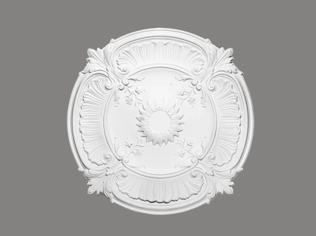 Rozeta sufitowa B3077 to produkt o wymiarach 75,2 cm średnicy i 4 cm wysokości. Wykonana jest z trwałego i odpornego na uszkodzenia materiału ProFoam. Produkt dostępny jest w kolorze białym, co sprawia, że doskonale wpisuje się w każde wnętrze.Producent Mardom Decor
