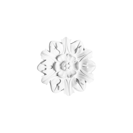 - Mała, klasyczna rozeta kwiatowa R12 to elegancki element sztukaterii sufitowej, idealny do wewnętrznych aranżacji o tradycyjnym charakterze.