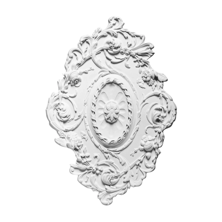 - Owalna rozeta sufitowa R22, wykonana w klasycznym stylu, ozdobiona jest pięknym ornamentem liści i kwiatów, idealna do uzupełnienia sztukaterii sufitowej.