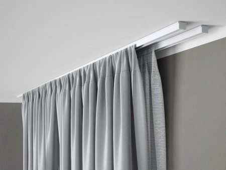 Zestaw karniszowy sufitowy D250 to idealne rozwiązanie do każdego wnętrza - zarówno do mieszkań, jak i biur czy hoteli. Dzięki minimalistycznemu designowi, karnisz doskonale wpisuje się w każdą aranżację. Zestaw zawiera wszystko, co potrzebujesz do montażu - nie tylko szyny karniszowe, ale także uchwyty, zaślepki, żabki, kołki z wkrętem oraz blokady szyny.
